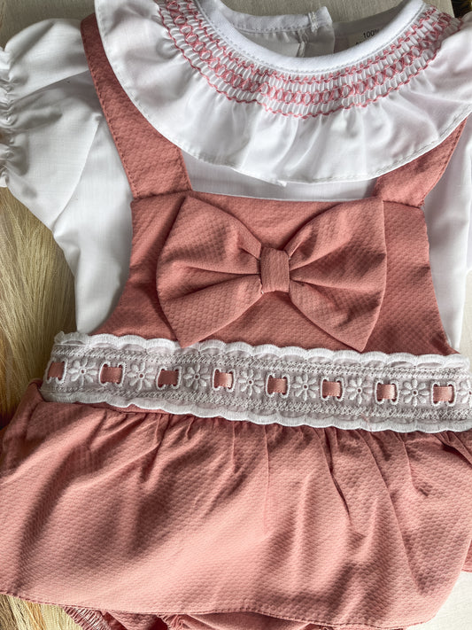 Conjunto de fofo/jardineira com blusa bebé rosa velho