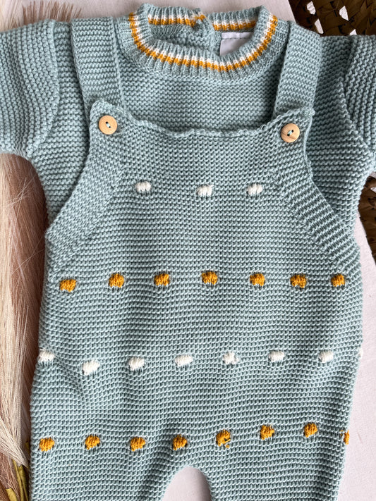 Conjunto de camisola com tapa fralda bebé cinza e rosa