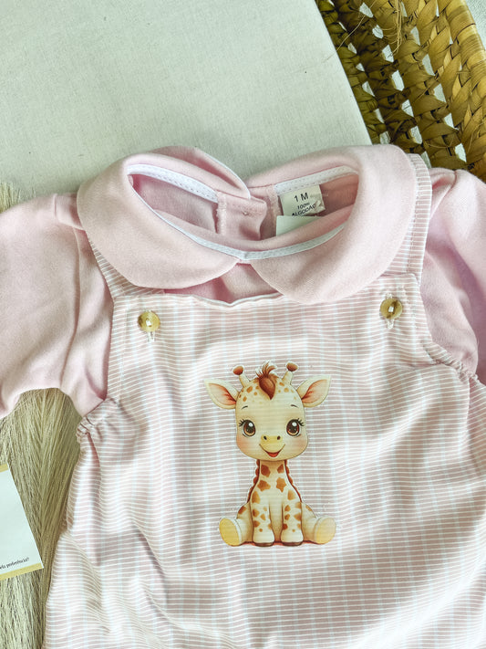 Em promoçãoConjunto de jardineira e camisola bebé rosa