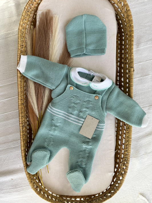 Conjunto de camisola e tapa fralda bebé cinza e azul