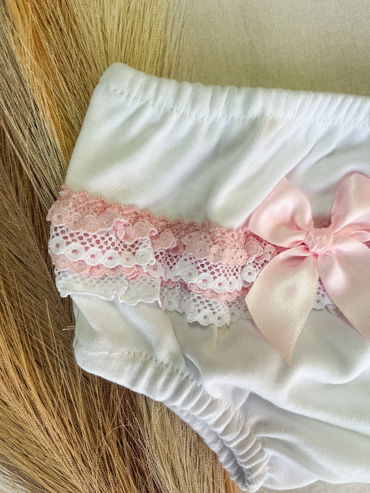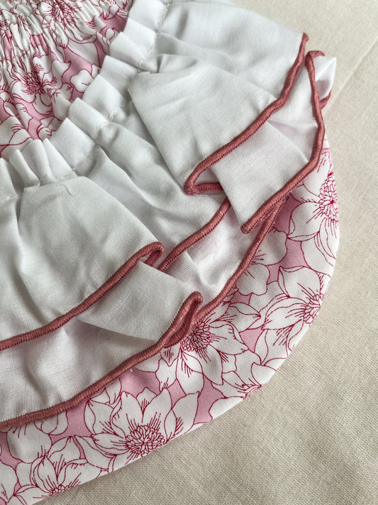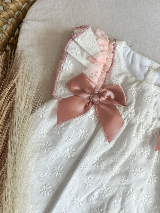 Conjunto de vestido com tapa fralda bebé menina rosa