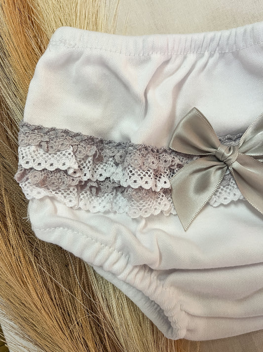 Conjunto de vestido com tapa fralda bebé menina bege