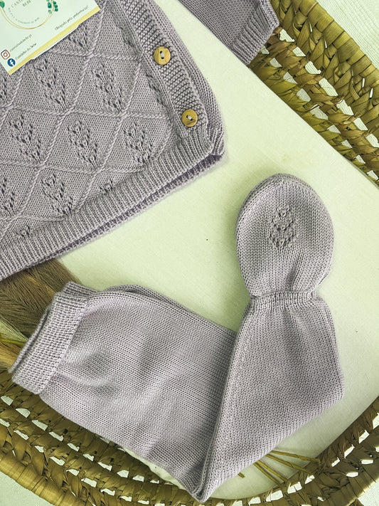 Conjunto de malha 3 peças bebé lavanda