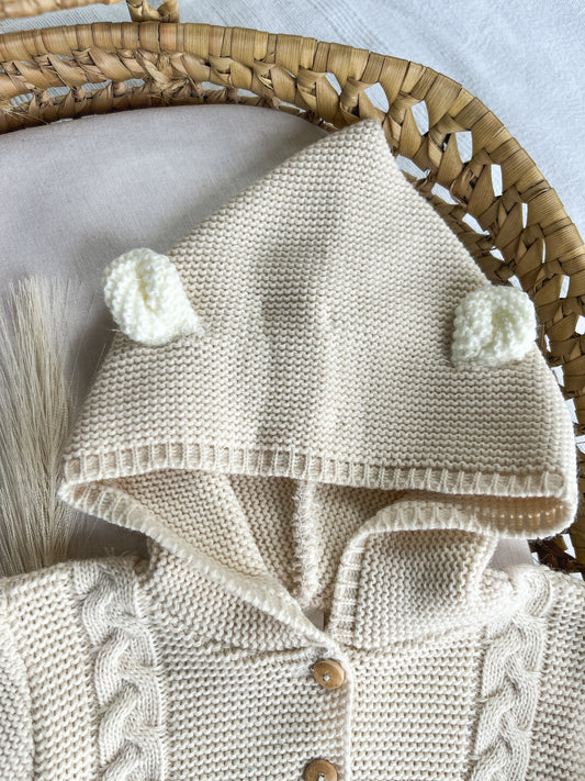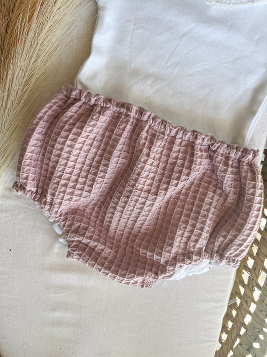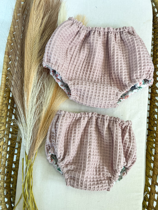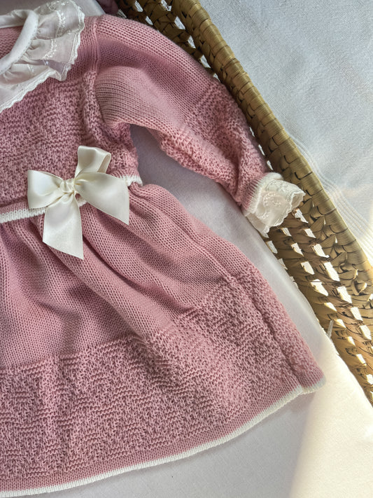 Conjunto de malha 2 peças vestido e touca rosa velho