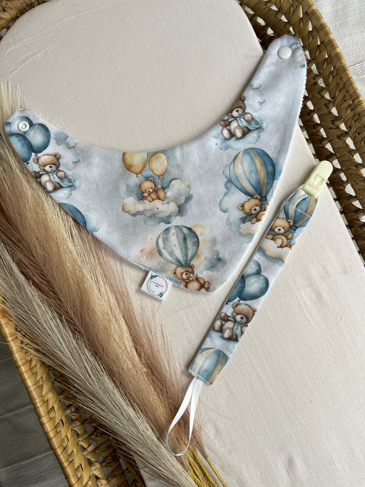 Conjunto de babete, fralda e prende chucha bebé rosa personalizável com nome