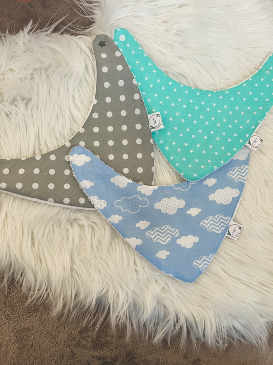 Pack de 3 babetes impermeáveis bandana personalizável com nome vários padrões
