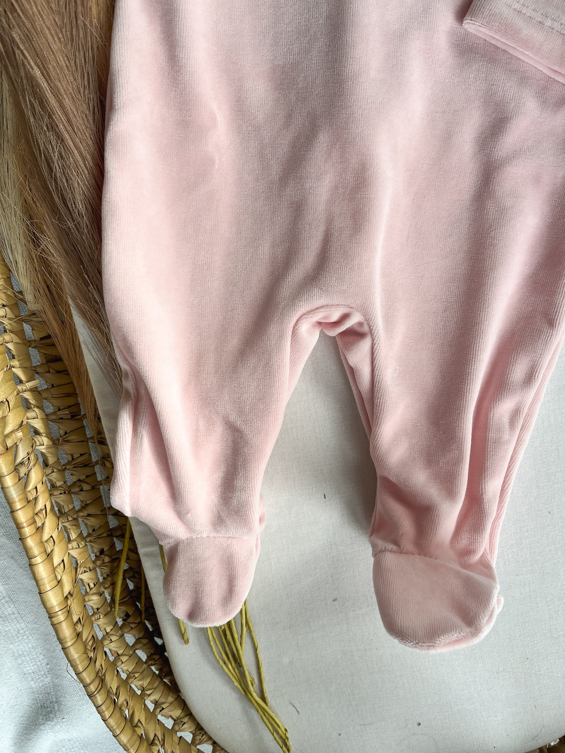 Babygrow de veludo bebé rosa velho personalizável com nome