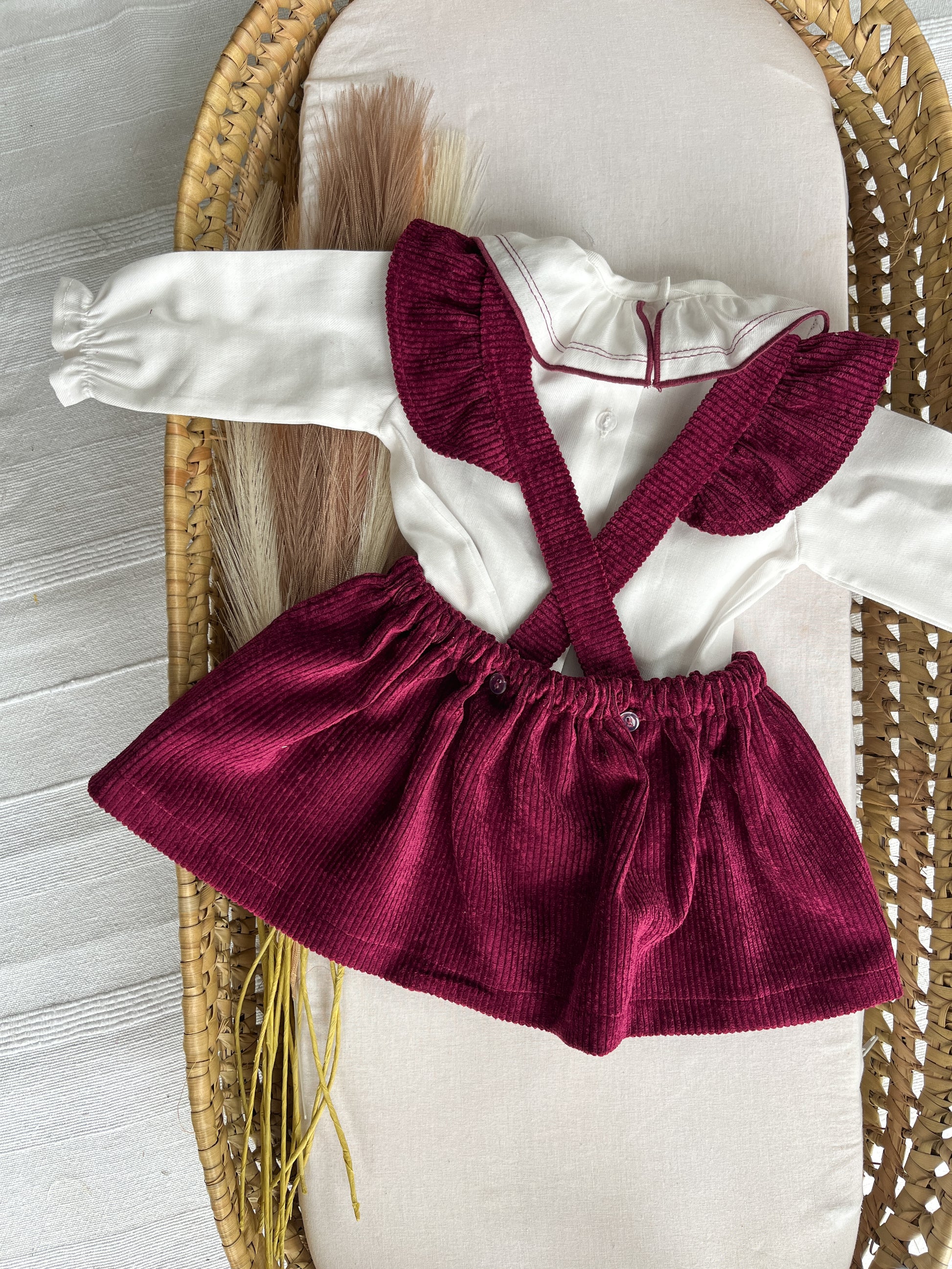 Conjunto de vestido com blusa bebé bordô