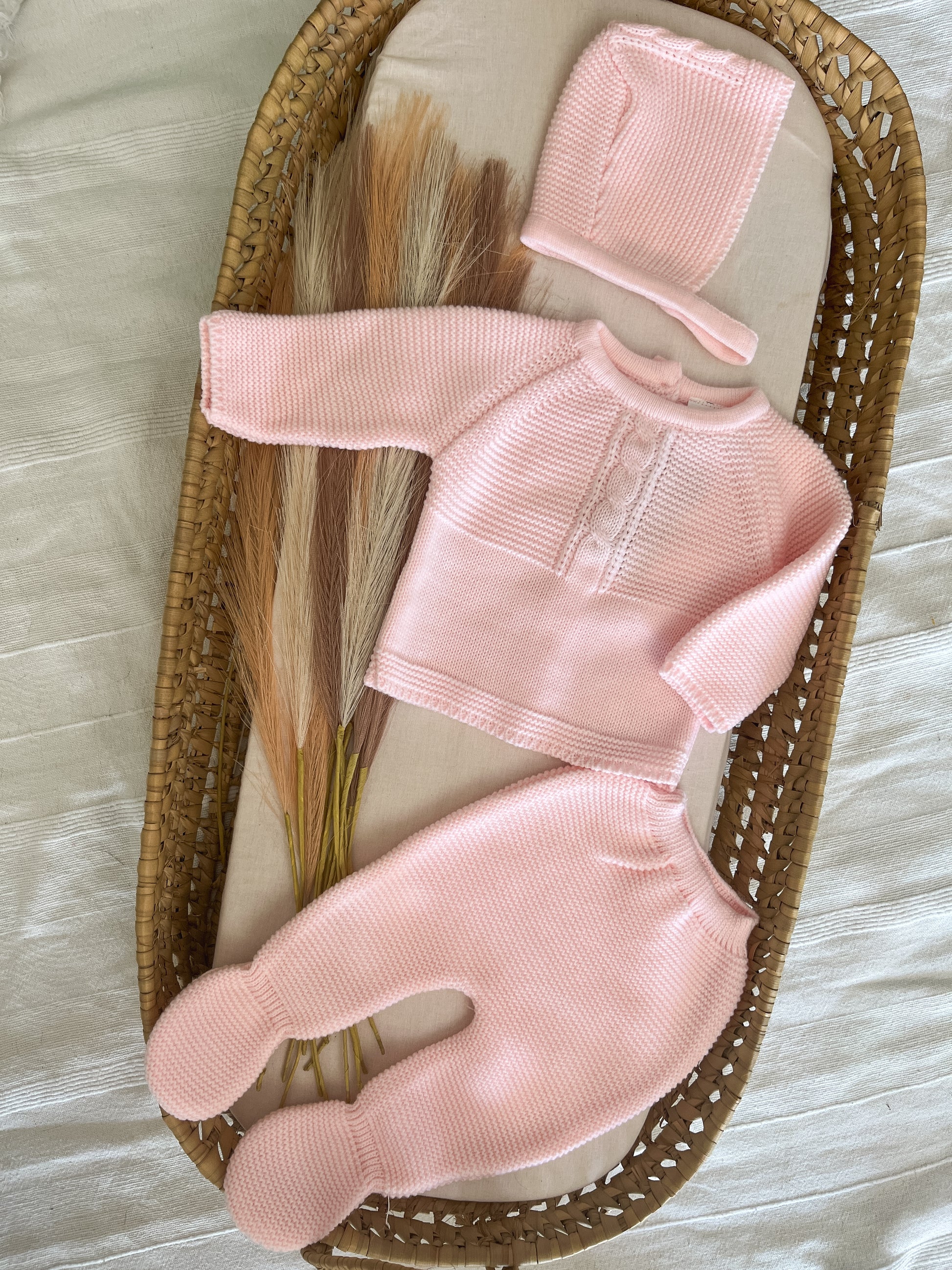 Conjunto de malha 3 peças bebé rosa bebé